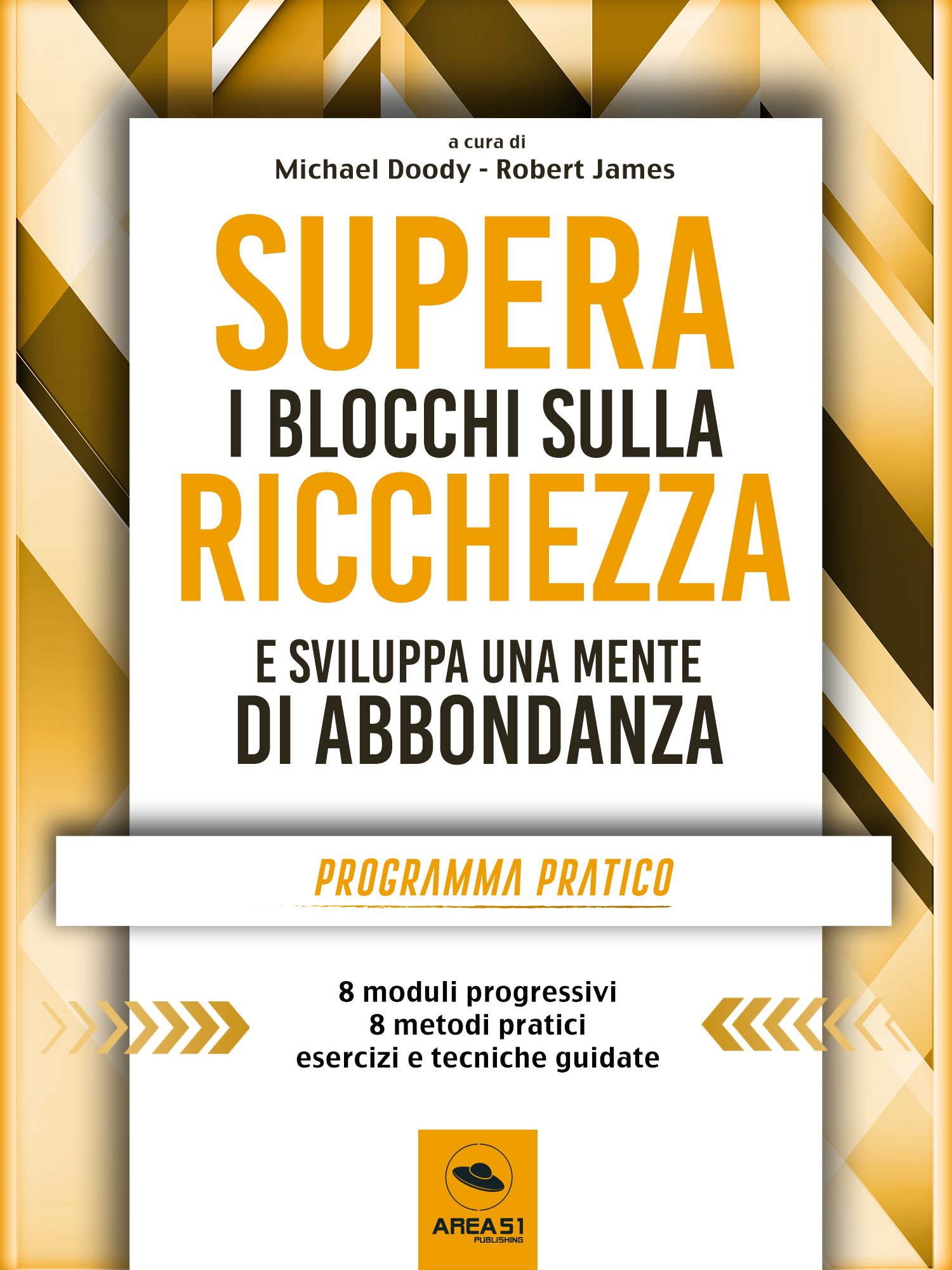 Questo ebook è un programma pratico modulare. È diviso in otto parti distinte, otto moduli che utilizzano comprovate tecniche e metodi per uno scopo comune: aiutarti a liberare la tua mente dai blocchi limitanti nei confronti della ricchezza, del guadagnare e dello spendere e sviluppare l’attitudine a creare una vita di prosperità, abbondanza e serenità verso il denaro. Ogni modulo, diviso in due parti, una d’introduzione al metodo relativo e una con le tecniche pratiche, è dedicato a uno specifico metodo per la tua crescita personale. Ogni modulo ha quindi un approccio diverso: in questo modo puoi trovare quello con cui ti senti più a tuo agio, con cui ti senti più in armonia. Ne potresti conoscere qualcuno, tutti o nessuno. Non importa, perché il programma è strutturato progressivamente, in modo da consentirti di scegliere liberamente quando e dove iniziare, quale o quali tecniche utilizzare, quanto e come allenare la tua mente con questi strumenti. Inoltre con l’ultimo modulo conoscerai e utilizzerai il metodo originale ed esclusivo di Area51 Publishing per la tua crescita personale e spirituale, Mind3.